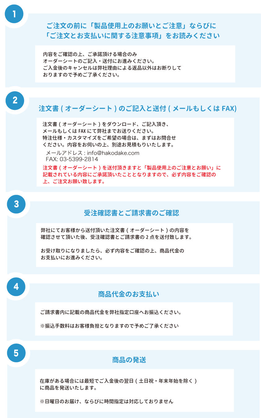 ご注文の前に「製品使用上のお願いと注意事項」ならびに「ご注文とお支払いに関する注意事項」を必ずお読みください。内容をご確認の上、ご承諾くださる場合は、オーダーシートでご注文をお願い致します。
